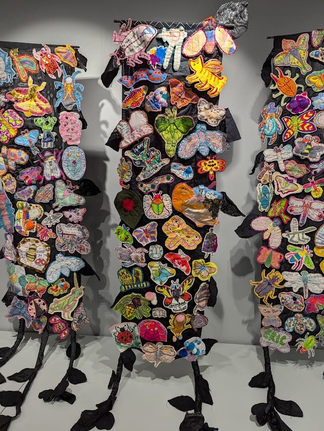 If you are looking for other fun things to do on this "snow day" or during the winter, the Stark County Artists' exhibition is open until January at the Massillon Museum. I have two artworks included, where I used dyed and sliced paper in a waffle weave structure to make a woven textile piece. There are many other community artists in the show as well to see. in the "Studio M" gallery is an installation by my artist friend Eric Anthony Burdis, who worked with young students and museum visitors to create all the bugs in the gallery.