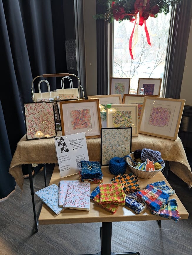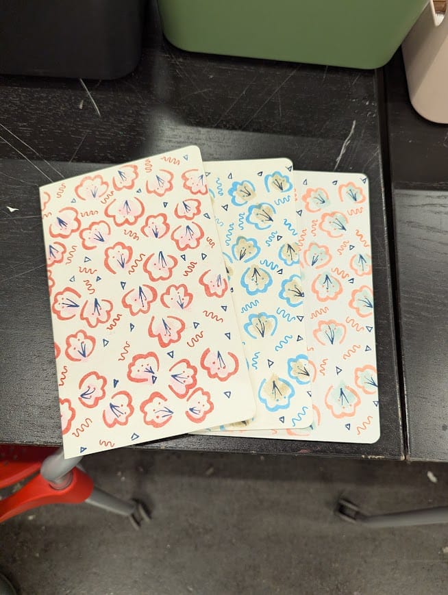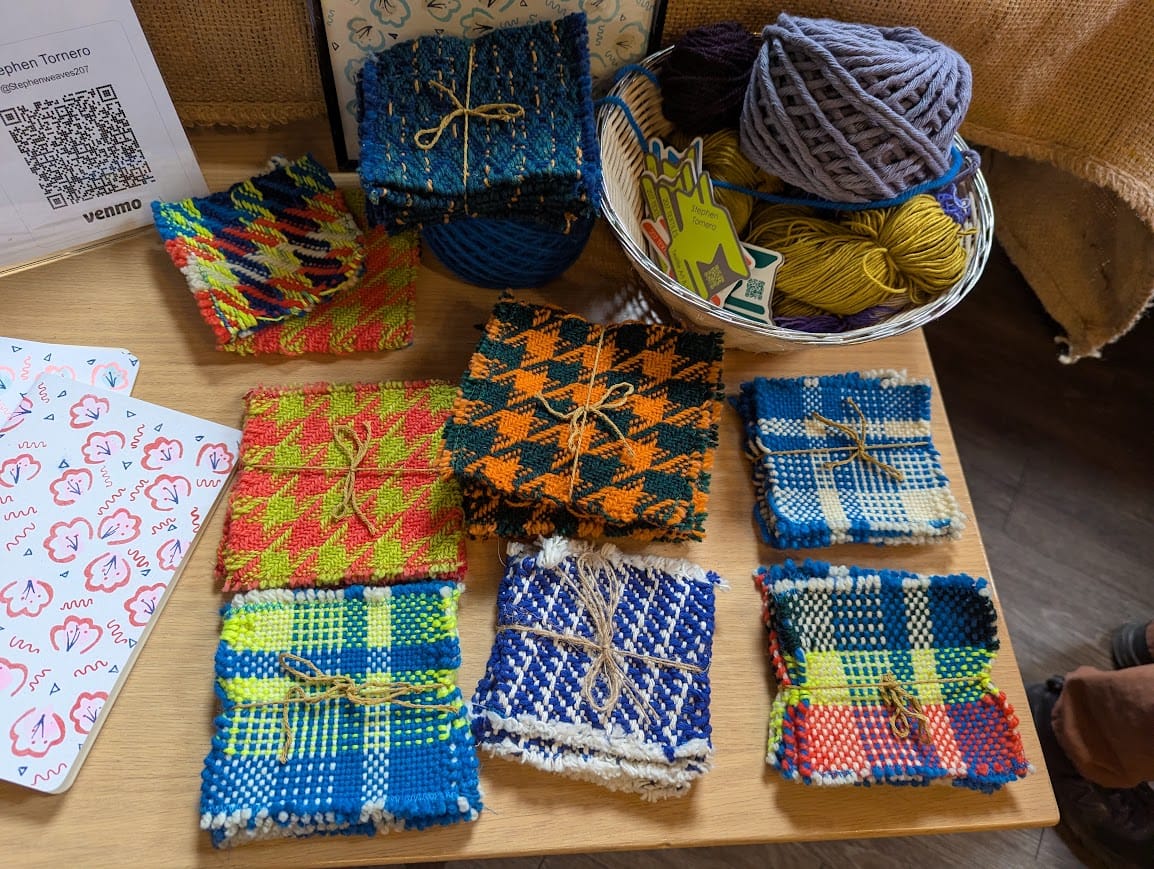 I used some of today to try and make some more coaster sets with this red/white 'butcher twine' I bought at Marc's a few years ago for 2/99¢. I have about 3 sets of 4 with this yarn, and then I'll hopefully have 3 sets with this primary colorway of wool in the center. Come say 'hi' this week during Frist Friday, and you can check out the new coaster sets, riso-printed journals (only $5!), and framed artworks for sale. I will be open from 5-9pm on December 5th. Come see me, and all the other artists from Second April Studios/ Kolp's Attic in downtown Canton!