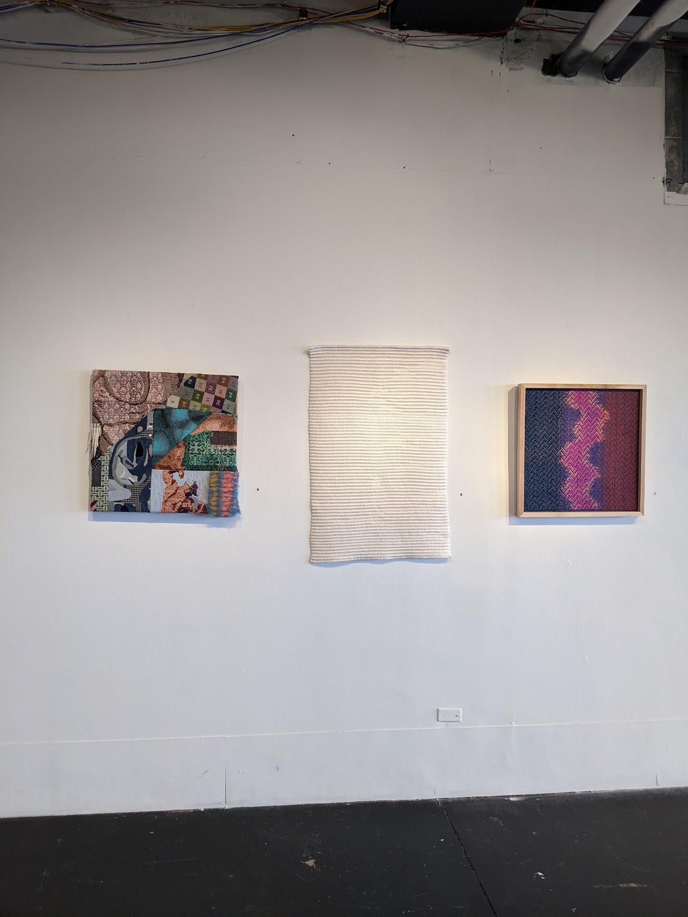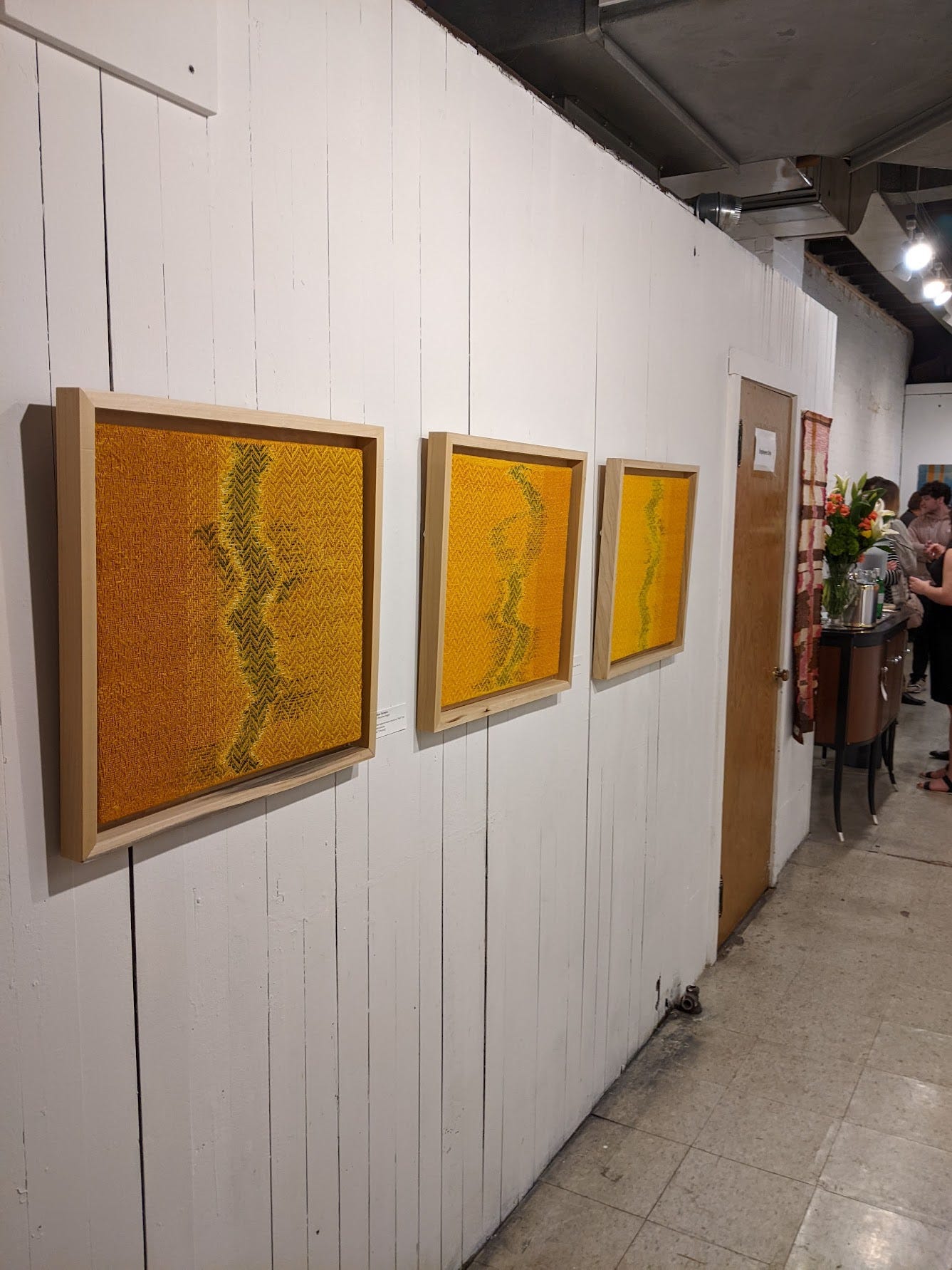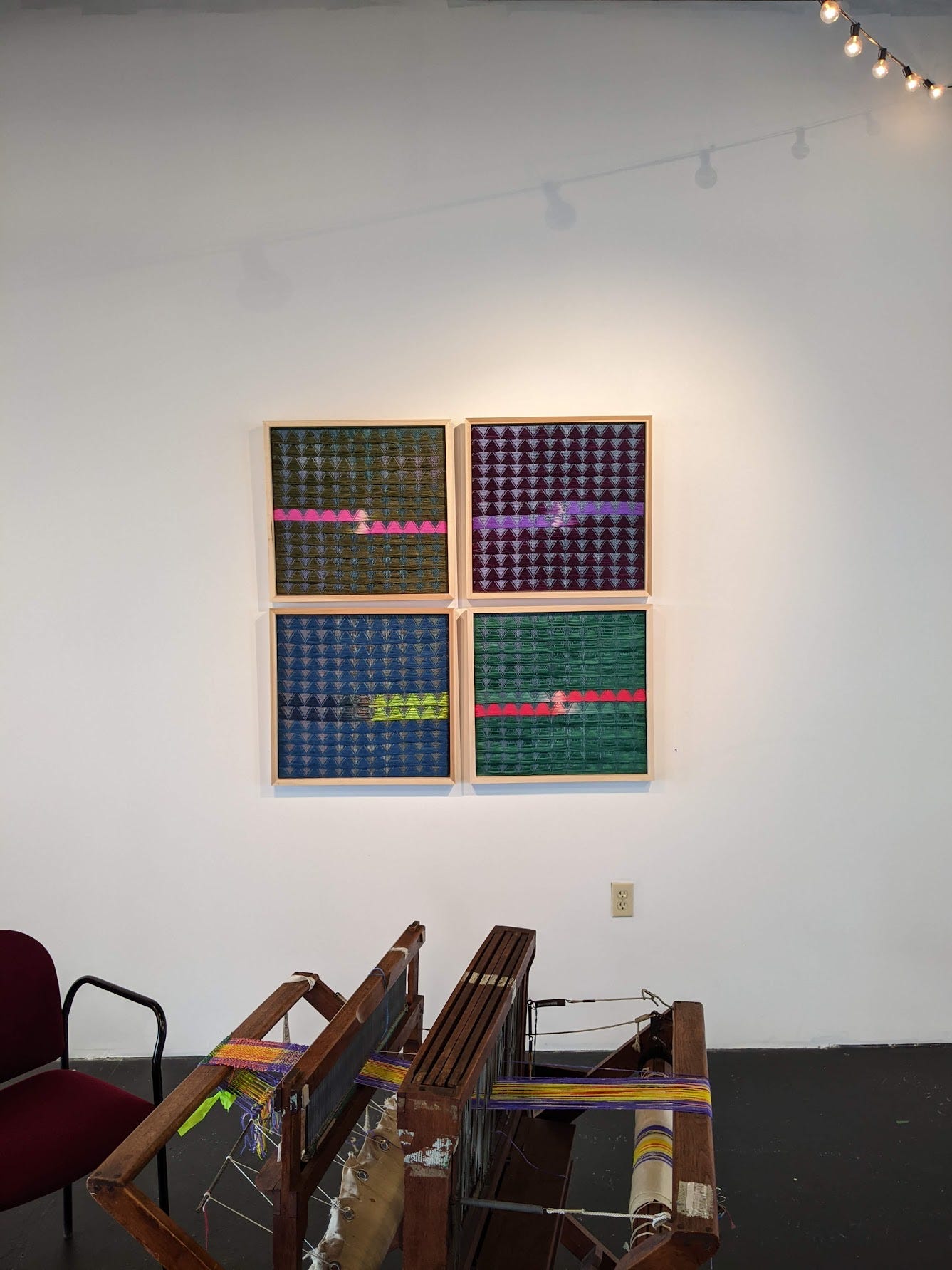 This show finally happening after 2 years of planning and emailing was so amazing. I love that I was able to have my pieces on the wall with my weaving and fiber friends. It was important to me to have a show of people who are artists, but also educators and arts advocates in the area. The show contains pieces from myself, Trey D. Ghering, Allison Smith, Erin Miller, and Priscilla Roggenkamp. We are all different in our practice, which spans weaving, quilting and felt-making, but I think we all have a similar aesthetic to make things that are finished and clean, which is what I liked about all the pieces. Even though they contain many colors and textures, they all have that tension of being existing inside a form. Even Priscilla’s “dress” sculptures have that hard edge that the work doesn’t go beyond. After the stress of hanging this first show, I really enjoyed the interplay of the pieces that were put together in groups or pairs. We recently did an “artist talk” event, and while it was not well attended, it was really great to see the other artists (some of who I have not talked to for 10 years!). We shared yarn and fabric samples and were able to catch up. This show will be on view at Summit Artspace until June 25th.
